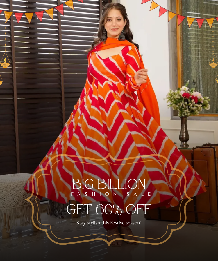 Biba Ikkat Print With Kurti Pant & Dupatta Set For Women