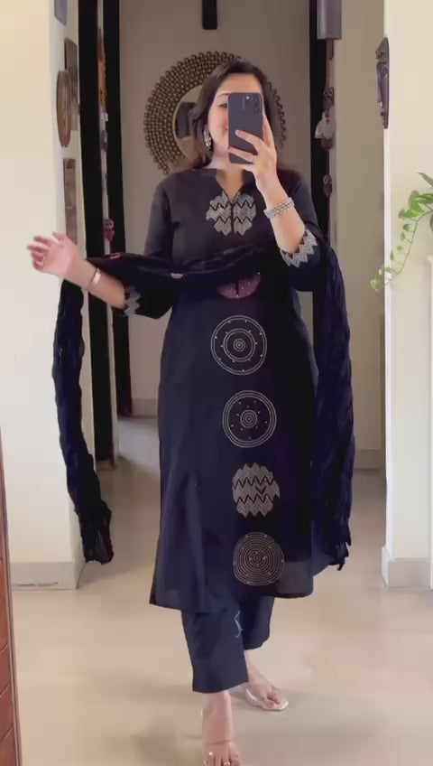 Biba Classic Black & Rust Ethnic Cotton Suit Set