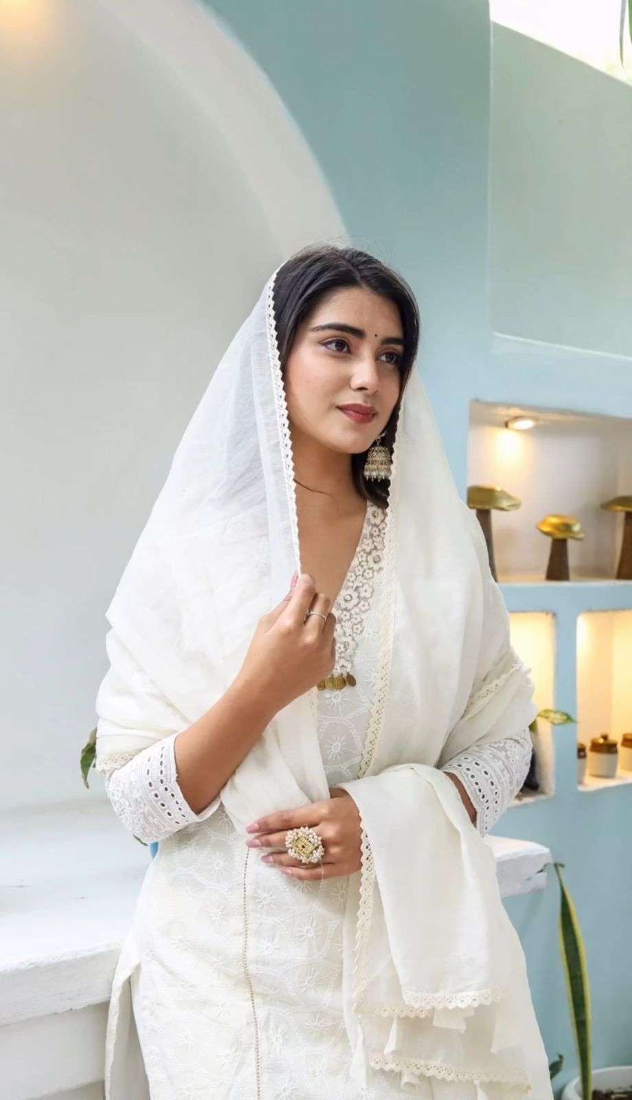 Biba Chickenkari Kurti Pant Set With Embroidered Lace And Chanderi Dupatta